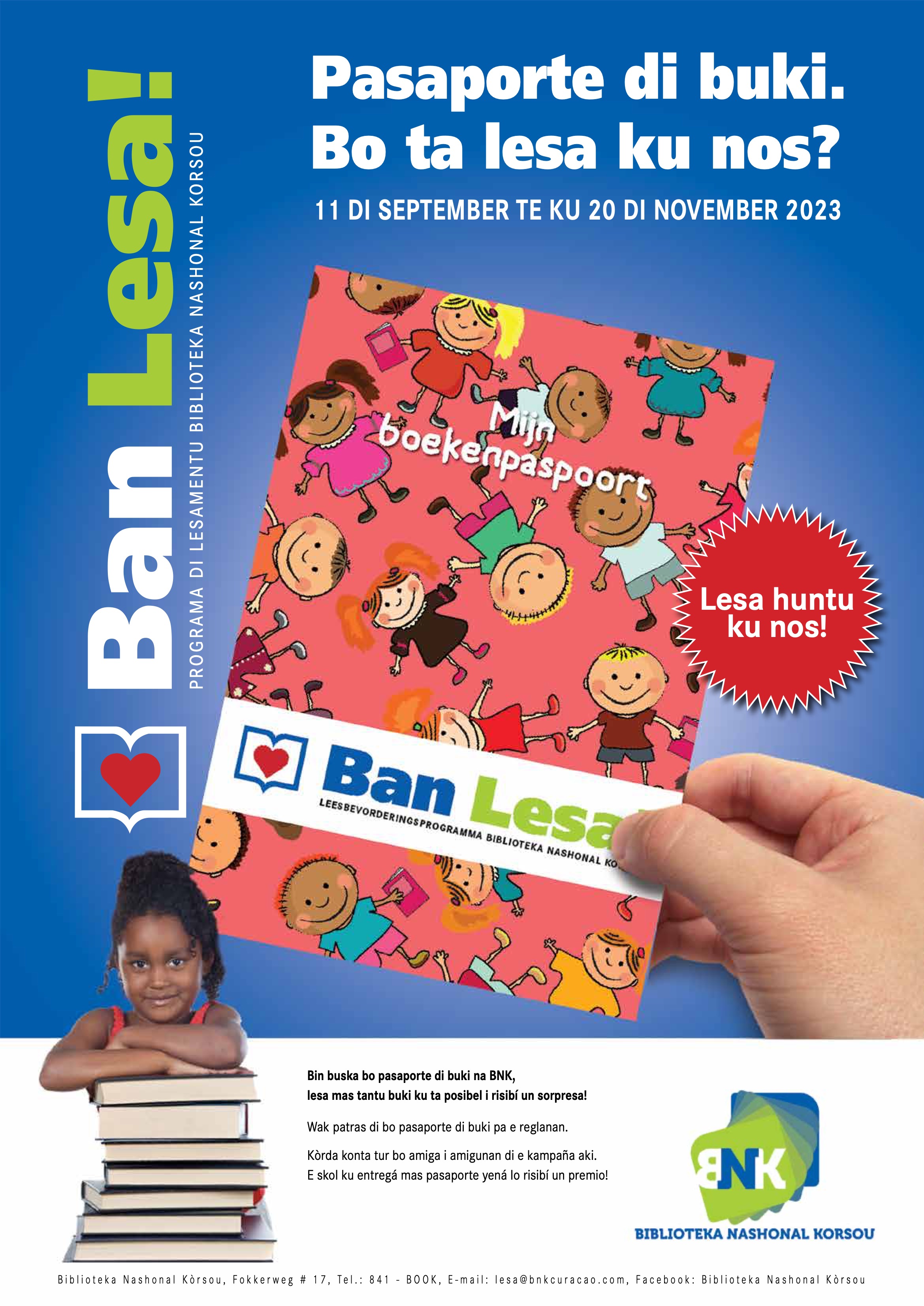 Periode: 11 september t/m 20 november 2023. Uiterlijk 20 november 2023 het VOLLE BOEKENPASPOORT bij de BNK inleveren.