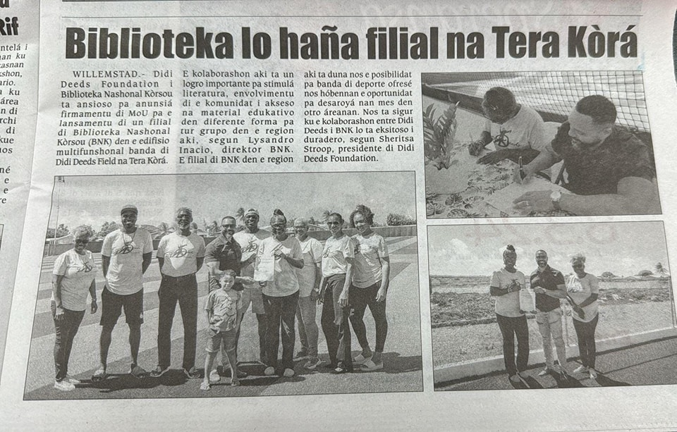 The Didi Deeds Foundation and the National Library of Curaçao recently signed an MOU agreement to open a library branch at the multidisciplinary center of the Didi Deeds foundation in the Tera Kora district.