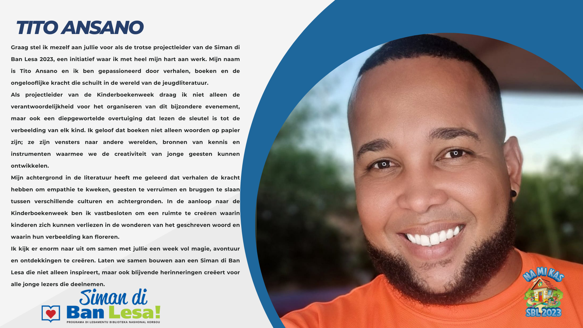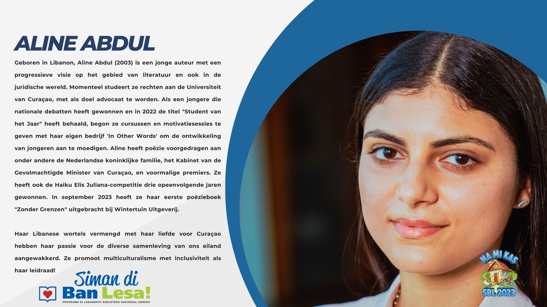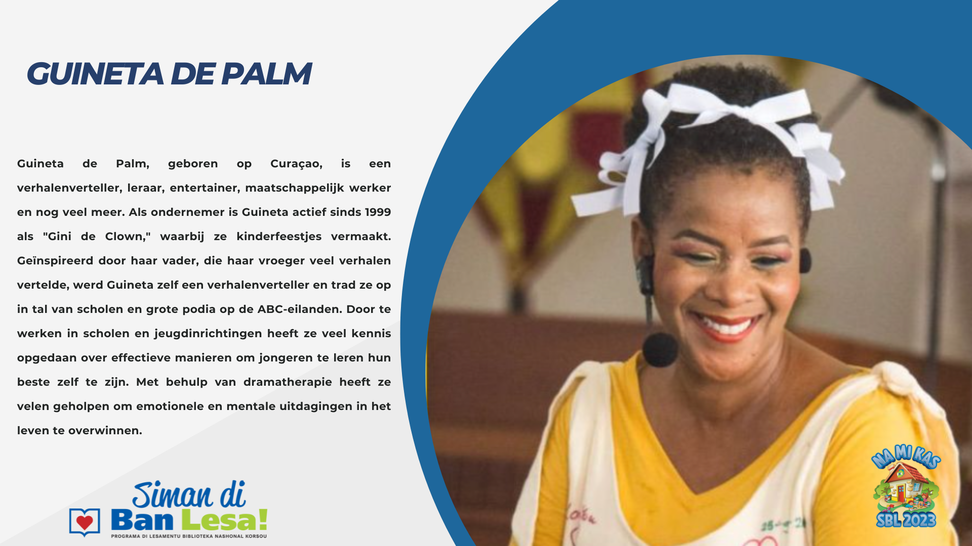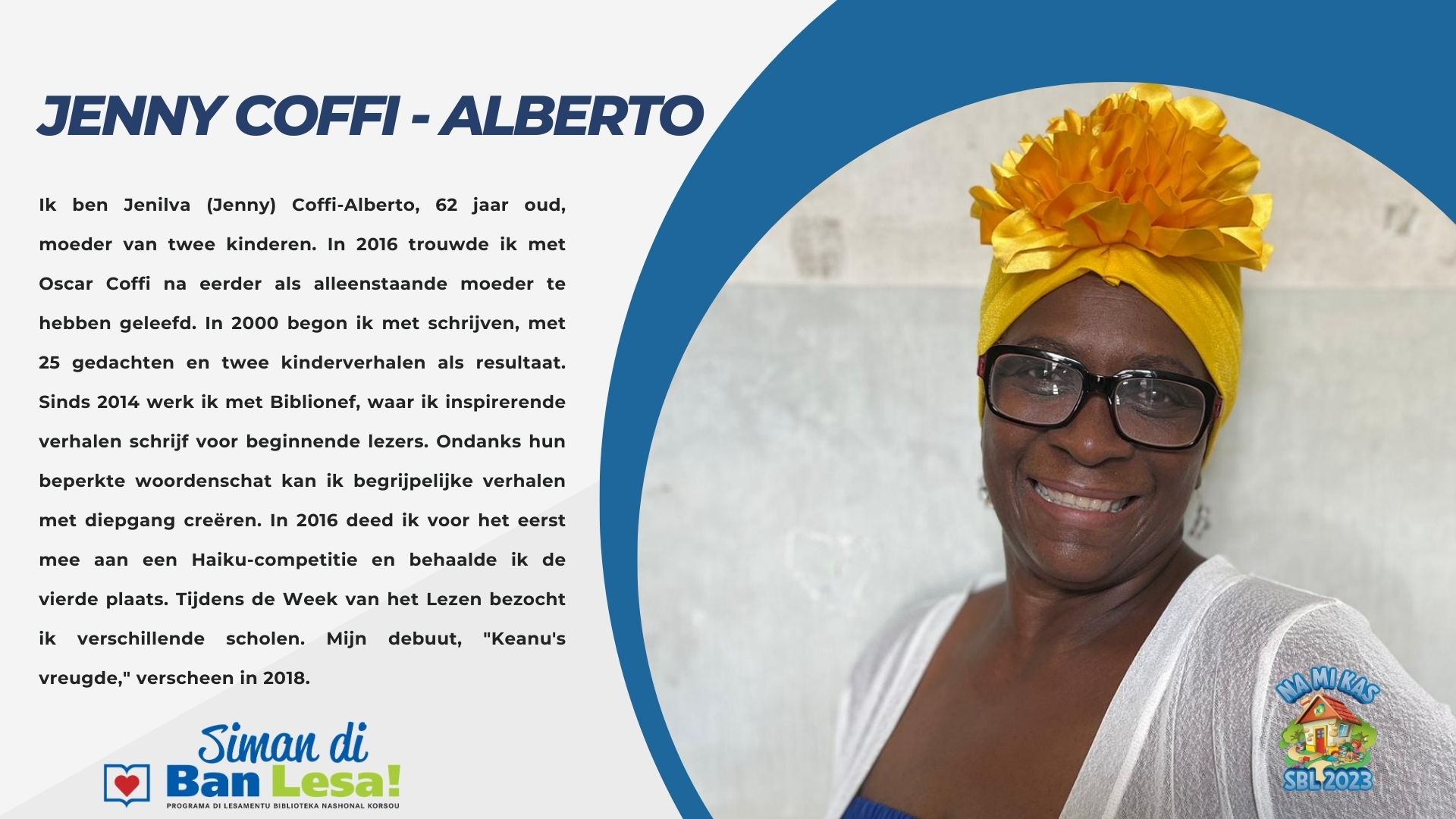 Sera konosí ku nos “auteurs/vertellers” ku ta partisipá durante di Siman di Ban Lesa 2023.